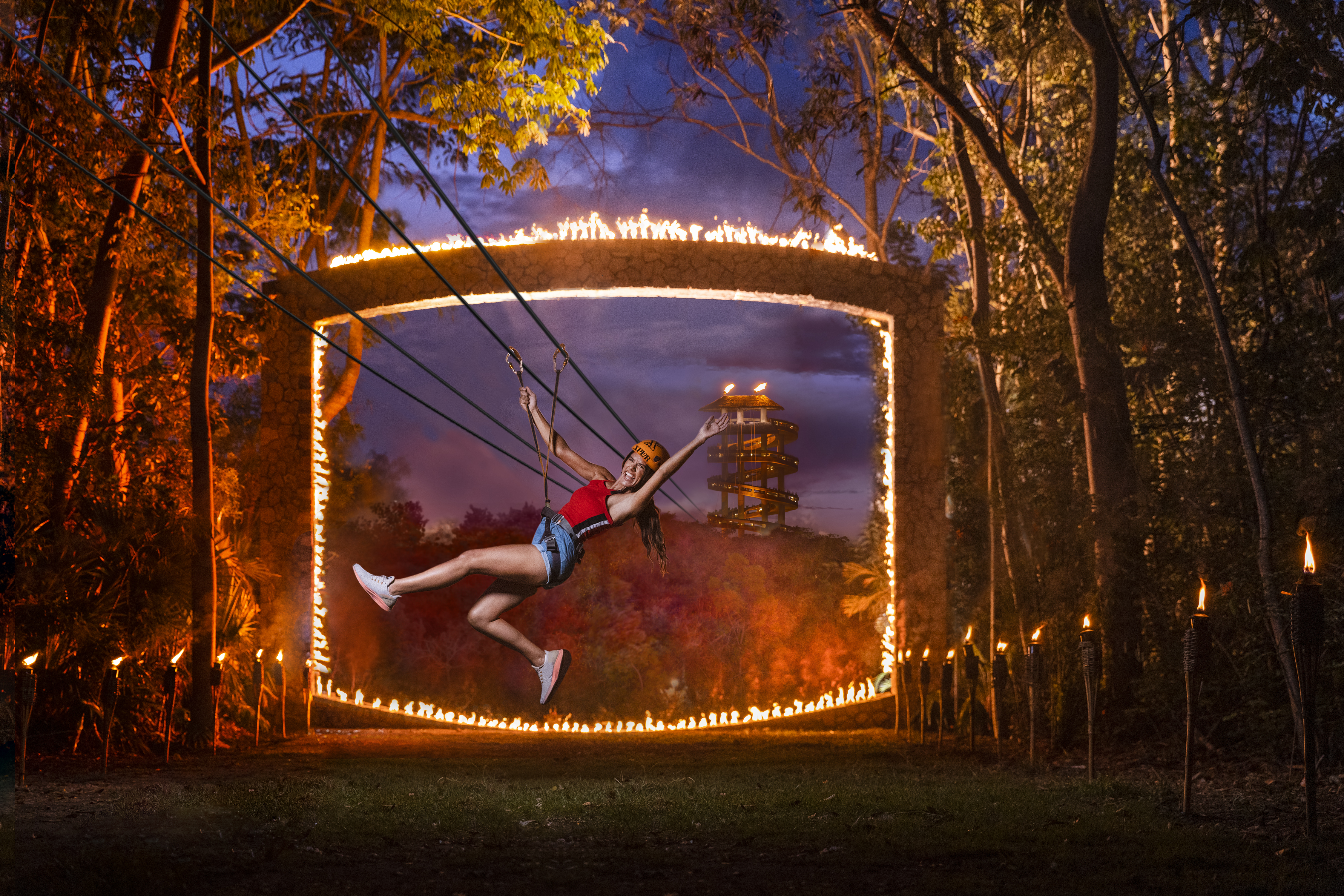 ¿Lo mejor? Al caer la noche Xplor se convierte en Xplor Fuego, bajo la luz de luna las antorchas se encienden iluminando los caminos de la selva, las cavernas repletas de estalactitas y estalagmitas que puedes recorrer durante tu visita.