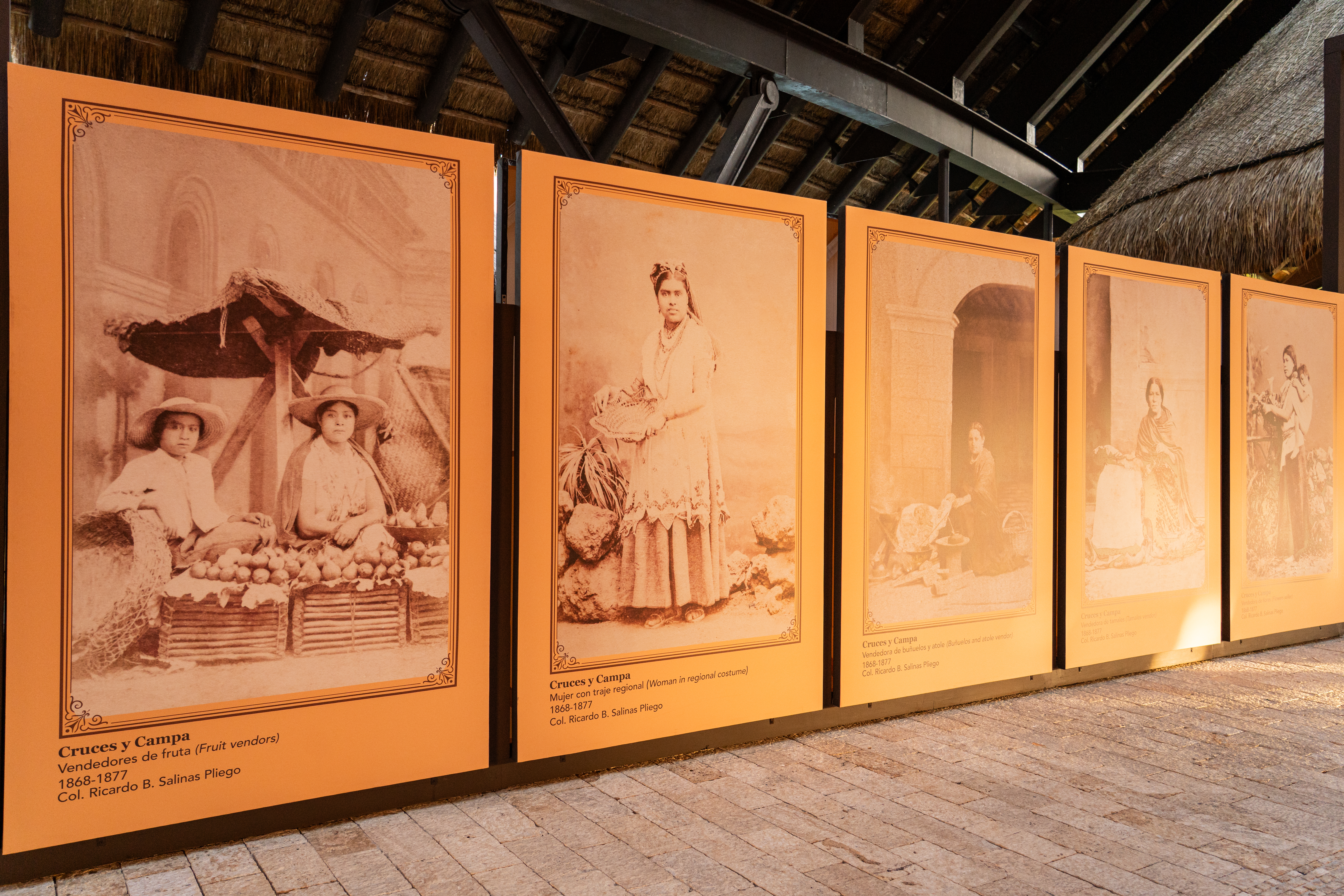 La muestra está integrada por 42 fotografías inspiradas en las cartes de visite, pequeñas imágenes de 6 x 9 cm que se popularizaron en la década de 1860 y que permitían compartir retratos con familiares y conocidos. La muestra se divide en dos salas o ejes curatoriales, las primeras 20 imágenes pertenecen al estudio de los Hermanos Valleto, reconocidos por retratar figuras políticas, artistas y familias pertenecientes a la clase aristócrata. En la segunda parte del recorrido se presentan 22 imágenes más que corresponden al estudio Cruces y Campa, reconocidos por retratar usos, costumbres y actividades tanto populares como cotidianas del pueblo mexicano con escenografías y fondos pintados a las que se denominan: tipos populares. Estas imágenes de personas vestidas según sus oficios ayudaron a proyectar una representación visual de México dentro y fuera del país.